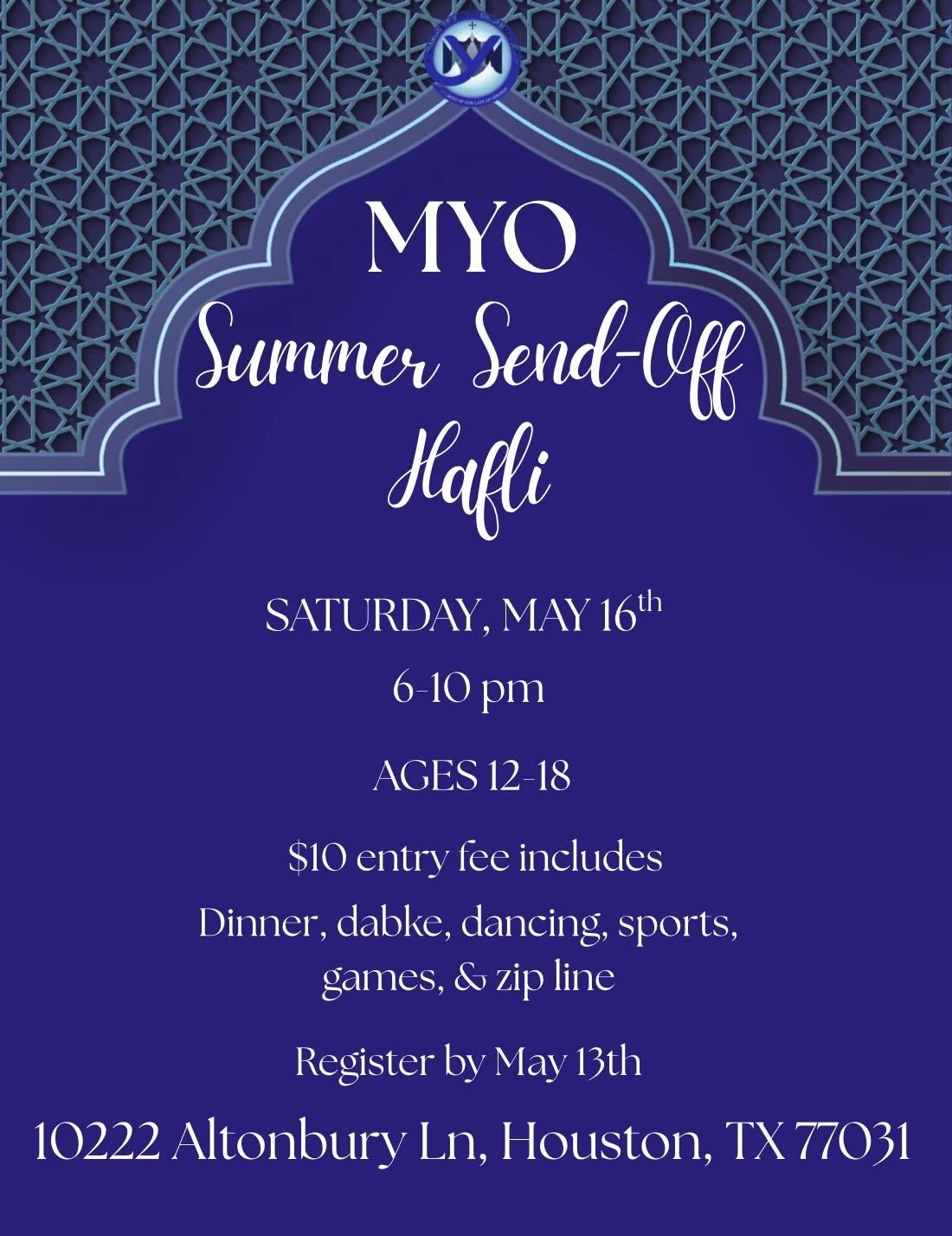 The Apostolate of the Maronites Young Adults in Houston (MYA - Houston) is a spiritual, cultural, and social organization, which strives to foster unity among the Young Adults of the Maronite Catholic Church. The MYA is open to all young adults between 18 and 35 years old who are members of the Maronite Church or who believe in the values and principles of the Maronite Church.